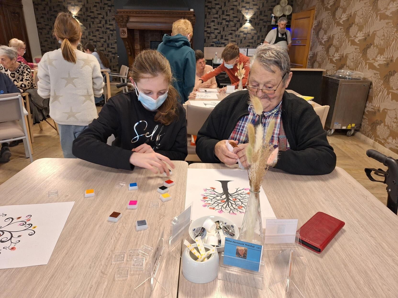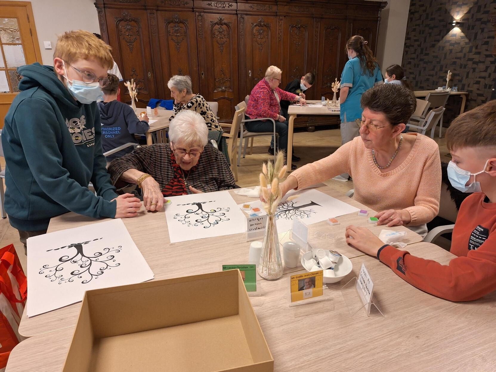 Chaque résident partageait son tableau avec un ou deux élèves. Ensemble, ils ont réalisé un travail qui a par la suite été offerte au résident. Pour couronner le travail, les enfants ont écrit un petit mot.
